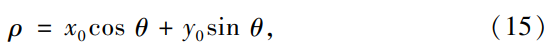 將圖像中所有的點(diǎn)(xi,yi)代入(14)式中,如圖15所示,如果多個(gè)不同的點(diǎn)在極坐標(biāo)系中得到的曲線相交,便意味著這些點(diǎn)可以連成一條直線。如果同時(shí)相交的數(shù)量超過(guò)了設(shè)定的閾值,則對(duì)該直線進(jìn)行擬合。